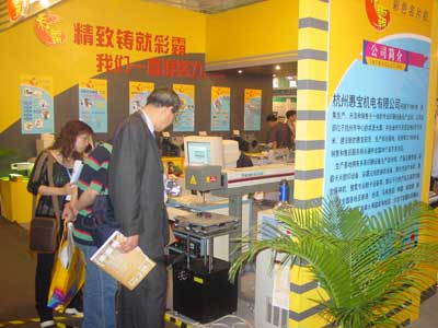 來自德國、美國等20多個(gè)國家及中國內(nèi)地和港、澳、臺(tái)800多家廠商參加展出。杭州惠寶機(jī)電有限公司的展位前格外熱鬧,成了此次展銷會(huì)上的“明星”。惠寶產(chǎn)品因設(shè)計(jì)新穎、功能強(qiáng)大成為各大媒體競(jìng)相報(bào)道的熱點(diǎn),同時(shí)惠寶開展的一系列經(jīng)貿(mào)促銷活動(dòng)也上了當(dāng)?shù)貓?bào)紙的主要版面。作為第一次在國際印刷技術(shù)展會(huì)上展臺(tái)亮相的企業(yè),惠寶的產(chǎn)品不僅在國內(nèi)市場(chǎng)引起轟動(dòng),國外等地的客商也慕名前來訂購。