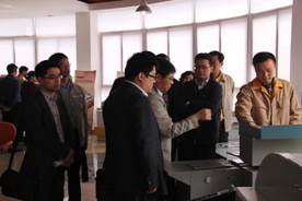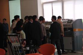 調(diào)研團成員對惠寶花園式的公司環(huán)境以及充滿活力的惠寶企業(yè)文化贊嘆不已。領(lǐng)導們一行興致勃勃地前往惠寶設備展示大廳對惠寶出品的膠裝機、切紙機、覆膜機等印后辦公設備進行考量。對彩霸覆膜機、彩霸無線膠裝機、彩霸系列切紙機等印后辦公設備的工作工藝流程進行了詳細地觀摩研討;對惠寶扎實的自主研發(fā)能力予以高度贊賞;對惠寶成立十五年來所取得的不菲成就表示欣喜;對惠寶長期致力于推動中國印后辦公設備發(fā)展的卓越貢獻表示肯定;并對企業(yè)未來的發(fā)展騰飛寄予殷切希望。