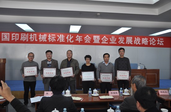 經(jīng)過全國印刷機械標(biāo)準(zhǔn)化技術(shù)委員會多方面的考察研究,委任我公司擔(dān)任此項目起草小組的組長單位兼執(zhí)筆起草單位。做為執(zhí)筆起草單位,我公司充分發(fā)揮省級高新技術(shù)企業(yè)的優(yōu)勢,全面調(diào)動研發(fā)中心切紙機項目組人員的實干精神,在結(jié)合已經(jīng)掌握的歐盟切紙機新標(biāo)準(zhǔn)和國內(nèi)小型切紙機行業(yè)現(xiàn)狀的基礎(chǔ)上,幾易其稿,框定了此行業(yè)標(biāo)準(zhǔn)中的各項準(zhǔn)則,再加上其他單位的后期熱情討論參與,也更認(rèn)可了《印刷機械 小型切紙機》行業(yè)標(biāo)準(zhǔn)的文稿,并在2013年11月底舉行的全國印刷機械標(biāo)準(zhǔn)化技術(shù)委員會會議上獲得全票通過,在此項目中我公司的辛勤工作和顯著成果獲得了技術(shù)委員會的高度評價和認(rèn)可,被正式授予 “先進(jìn)單位”稱號!
